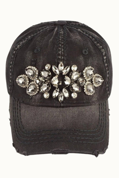 Glitz embellished deconstructed distressed baseball dad cap with matching PU leather buckle back. Unbranded.