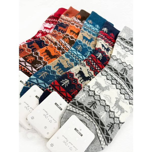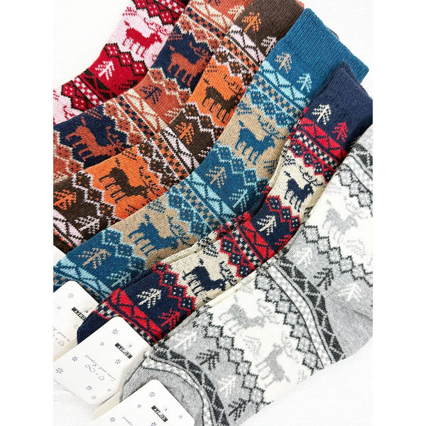 Reindeer Print Cozy Cabin Socks -Reindeer Print Cabin Socks are made of high quality fabric, soft to wear, breathable and high elasticity. Slipper socks keep feet warm even on the coldest of days, fluffy socks can help you better enjoy your winter indoor time