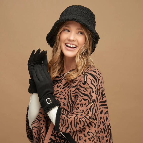 Stay warm in style with the Morgan Teddy Bear Cuff Gloves. Featuring a teddy bear knit detailing at the cuff, touchscreen compatible fingertips, and cute buckle embellishment, these are the only gloves you'll need this winter. Pair with the Morgan Teddy Bear Bucket Hat for an effortlessly styled look!