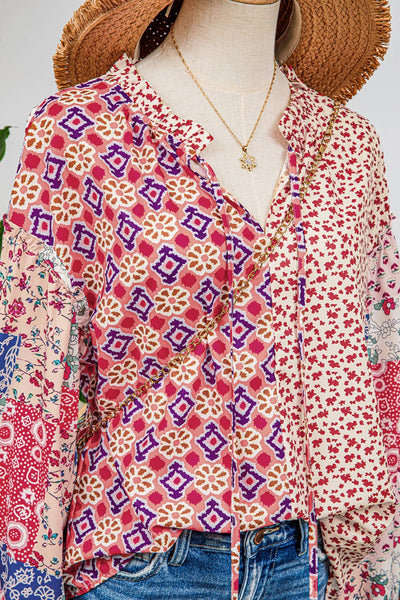 🌺Material: 100%Polyester 🌺Pattern: Color block,Floral 🌺Neckline: V Neck 🌺Sleeve: Short sleeve 🌺The mixed print gives this blouse top a unique and appealing look. The v neck with tie design makes it more feminine. A relaxed fit style is friendly and flattering to most. This women’s top is lightweight, soft and comfy.