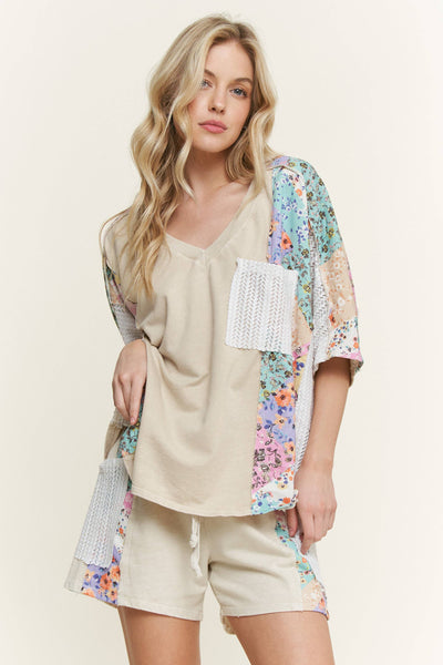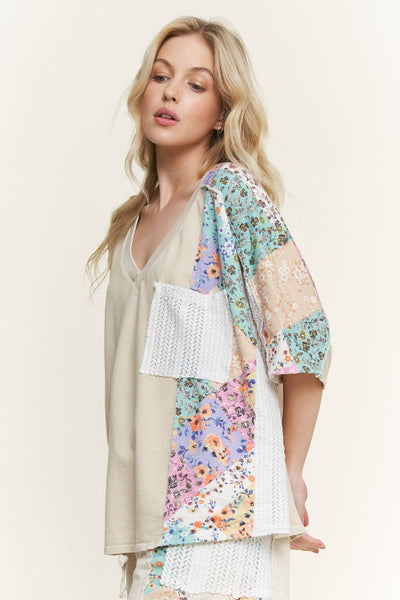 Mineral Washed Boho Flower Patch Print TOP * Actual colors may vary due to screens displaying colors different. *