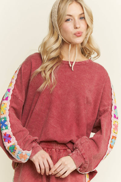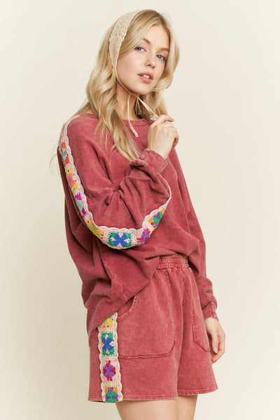 Mineral Washed Crochet detail Longsleeve sweatshirt * Actual colors may vary due to screens displaying colors different. *