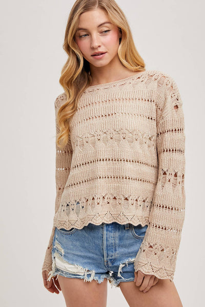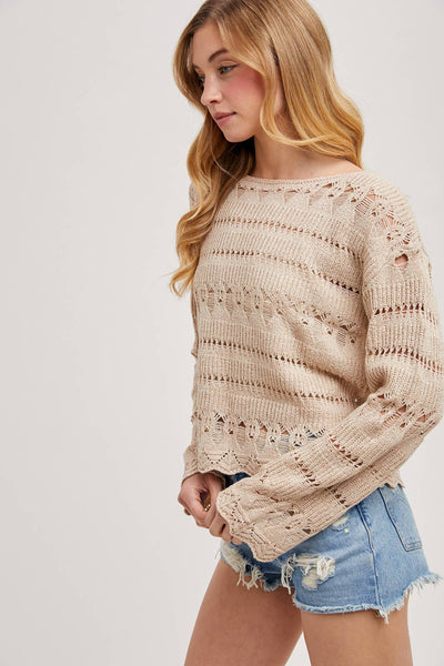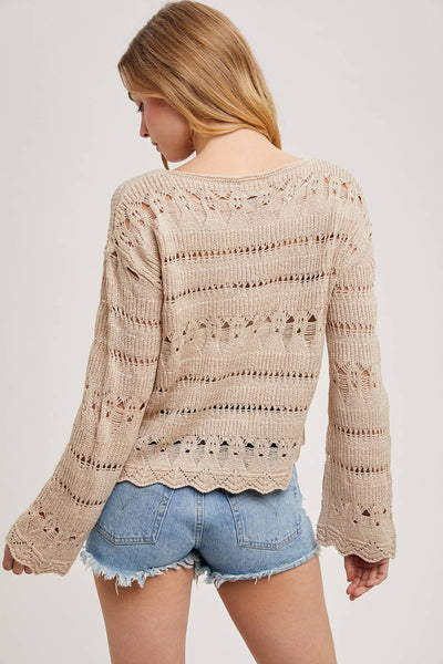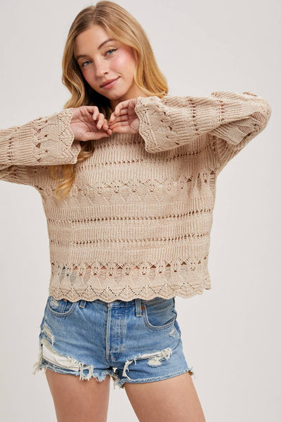 The sheer open-knit pullover offers a lightweight and breathable design, perfect for layering or wearing as a stylish beach cover-up. Crafted with an airy, open-knit pattern, it provides a relaxed fit and effortless drape. With no lining, it enhances a breezy, carefree look, making it an ideal choice for warm-weather outings or seaside escapes. Whether paired with swimwear or casual separates, this versatile piece adds a touch of bohemian charm to any outfit.