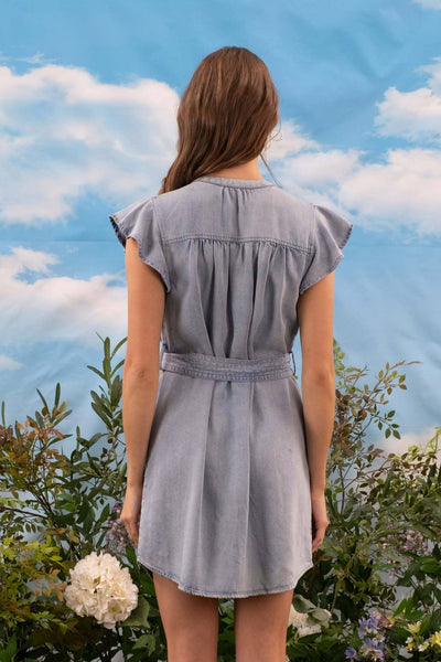 ROUND NECKLINE SHORT SLEEVES BUTTON DOWN BELTED BELT LOOPS YOKE DETAIL NOT LINED MINI DRESS 100% LYOCELL