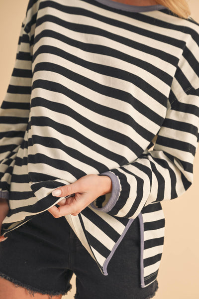 A timeless take on the classic Onida stripe, this breezy long-sleeve features a relaxed fit and raw edge details for that perfectly undone vibe. Effortless with denim or layered over a flowy maxi, it’s a go-to for days when comfort meets cool.