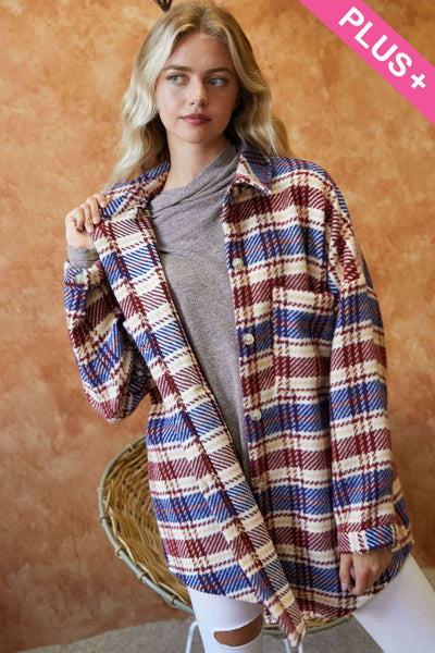 PLUS PLAID BUTTON DOWN CHEST POCKET DETAIL COAT JACKET 100%POLYESTER