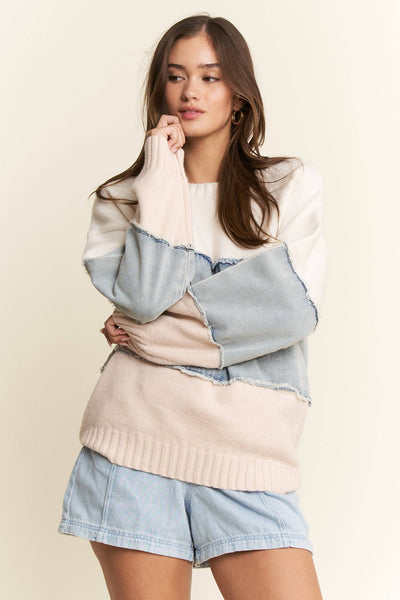 CURVY HORIZONTAL STRIPE SWEATER - Long sleeve - Tiered - Different fabrics - Cuffed sleeves and trim - Soft stretchy material - Round neckline