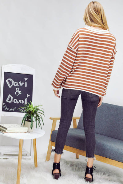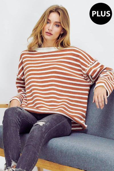 STRIPE ROUND NECK SWEATER 65%POLYESTER 35%VILLUS