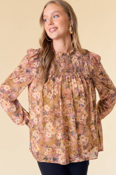 Smocked york floral blouse Self: 100%polyester | lining:100%polyester