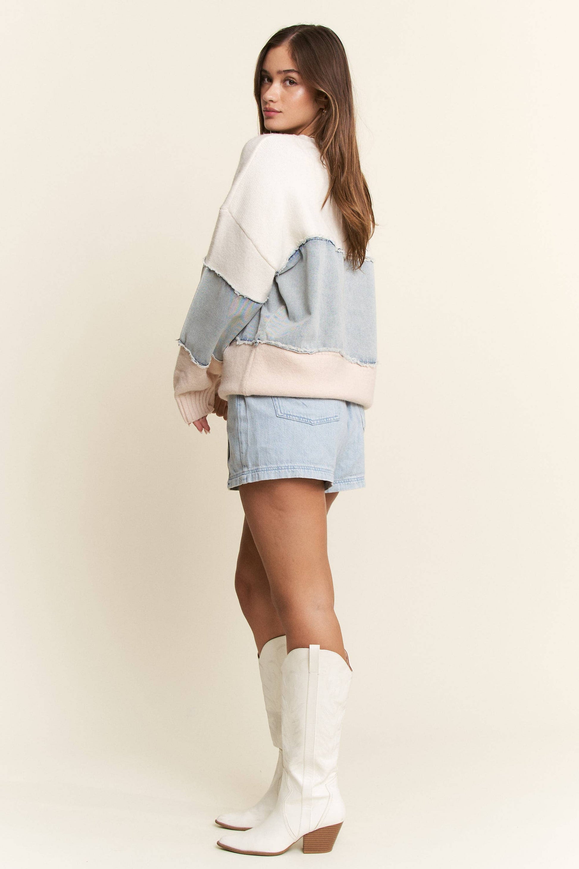 CURVY HORIZONTAL STRIPE SWEATER - Long sleeve - Tiered - Different fabrics - Cuffed sleeves and trim - Soft stretchy material - Round neckline