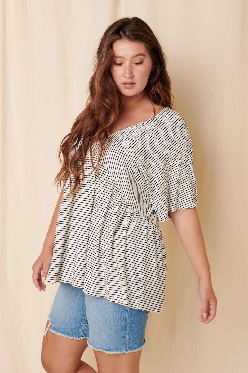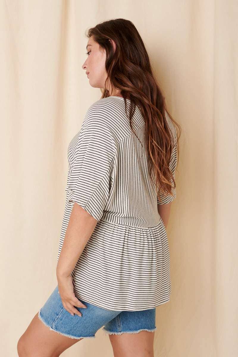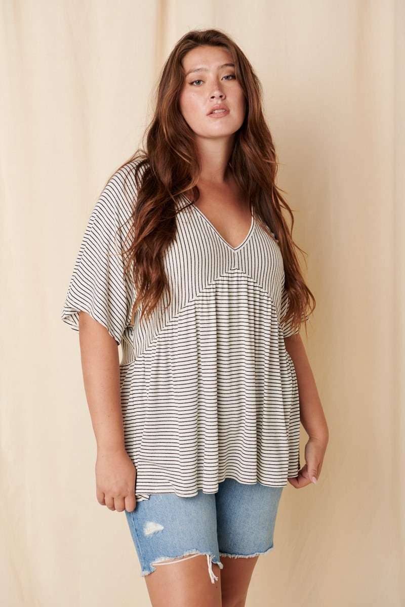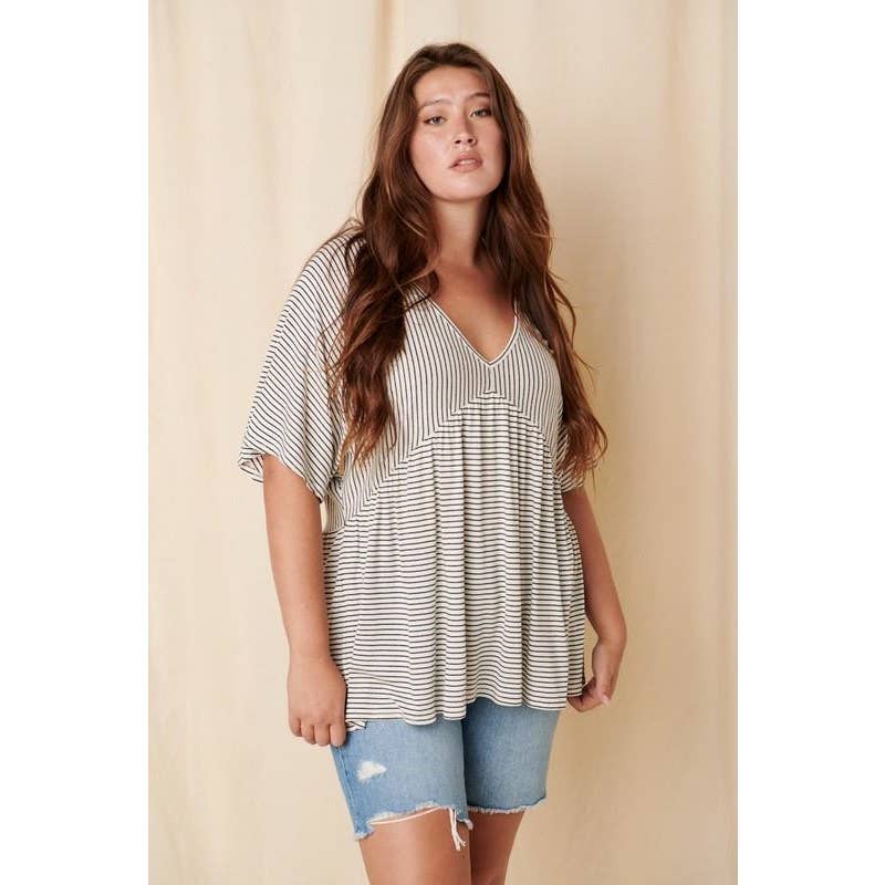 STRIPE V-NECK BABYDOLL KNIT TOP