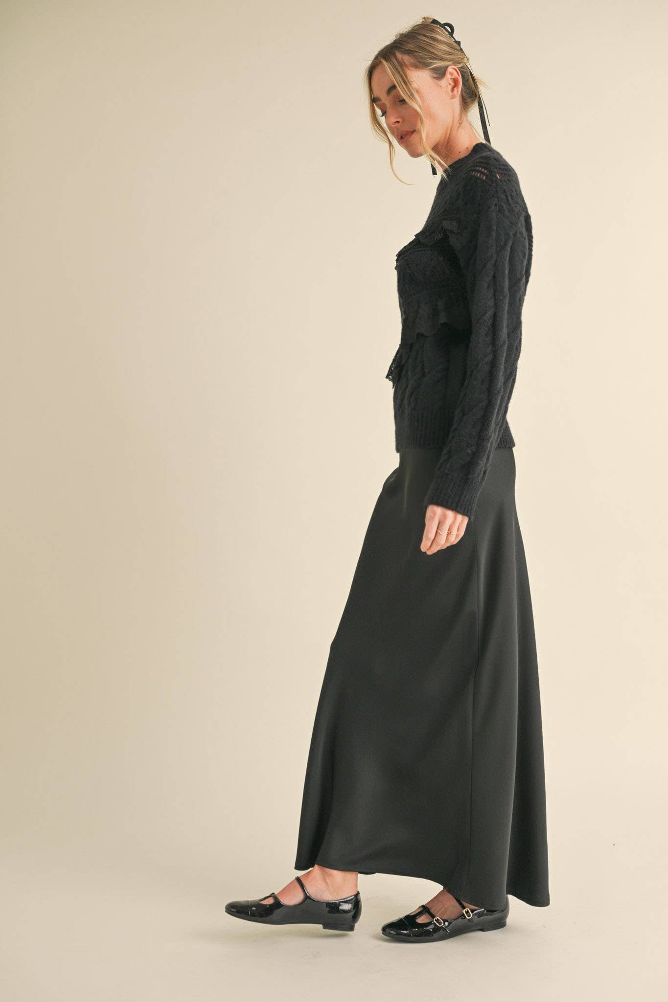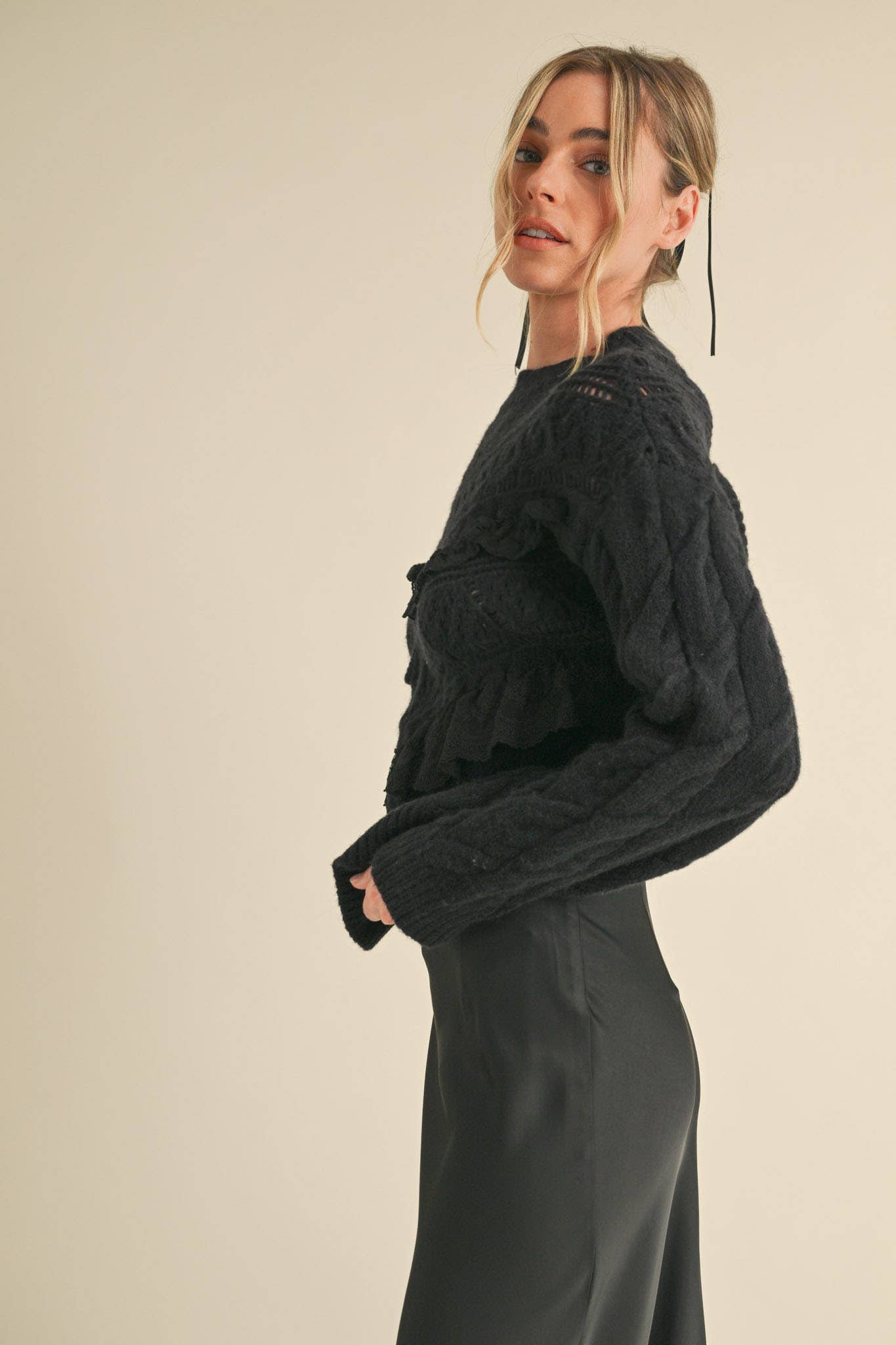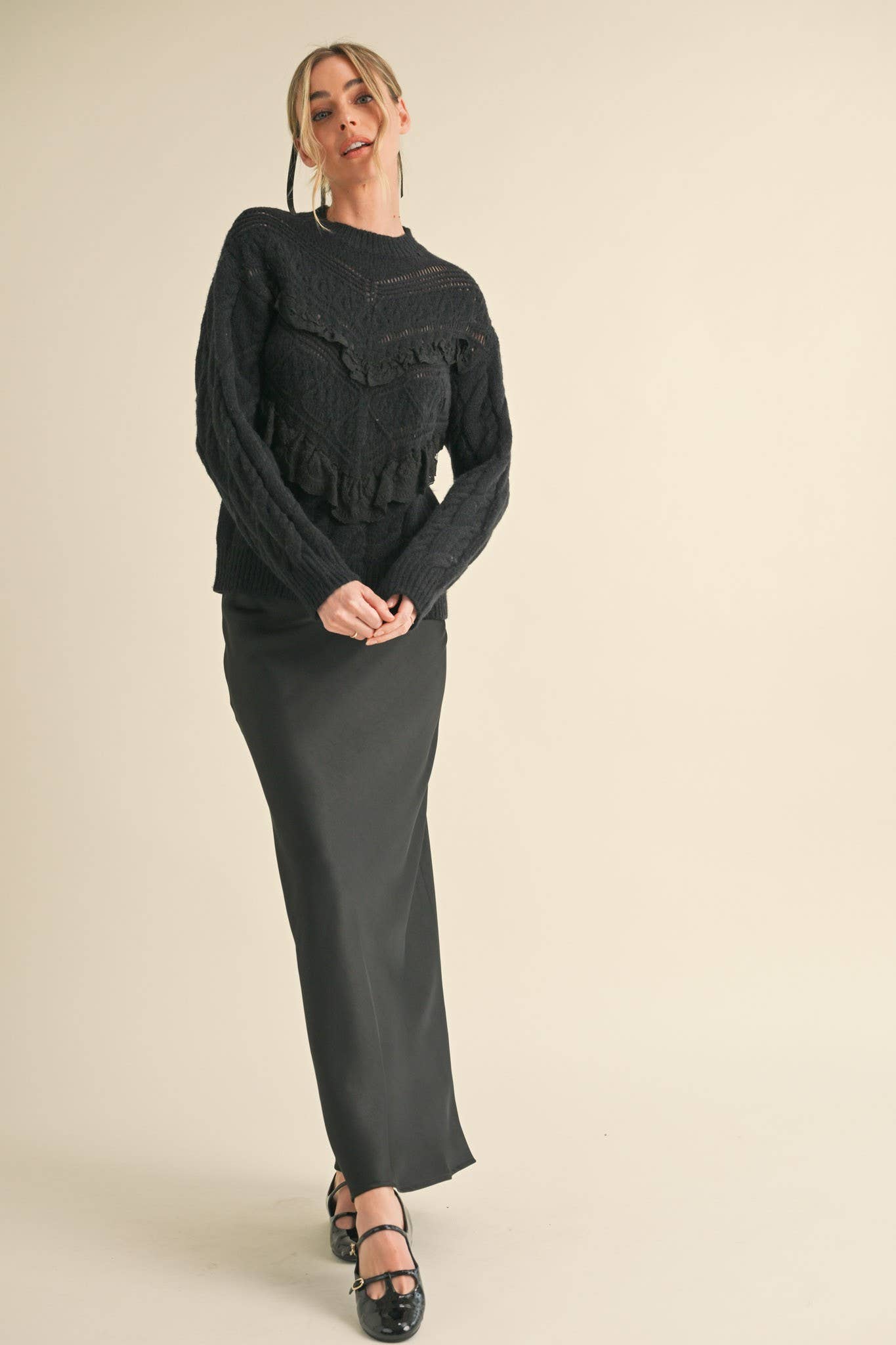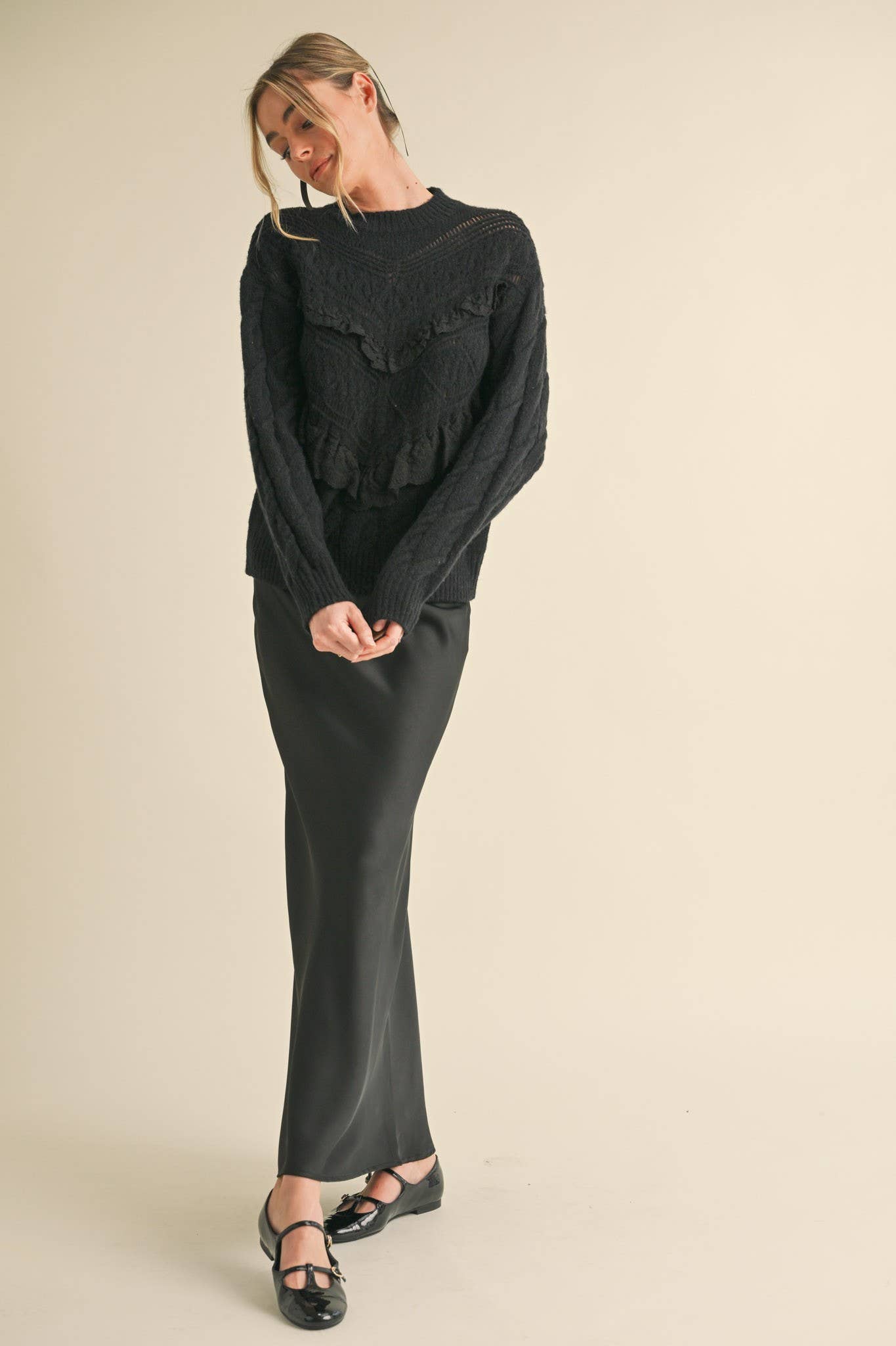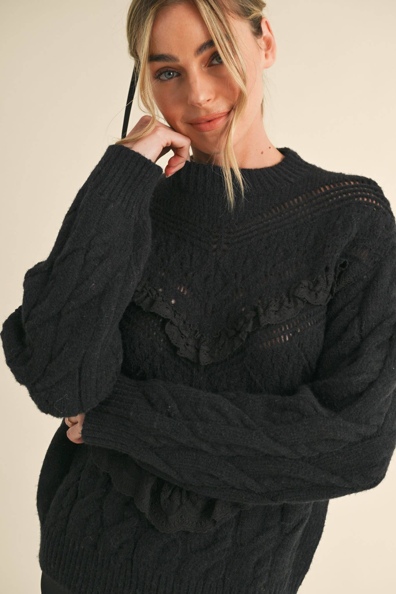 + Cable knit pattern and pierced pointelle
