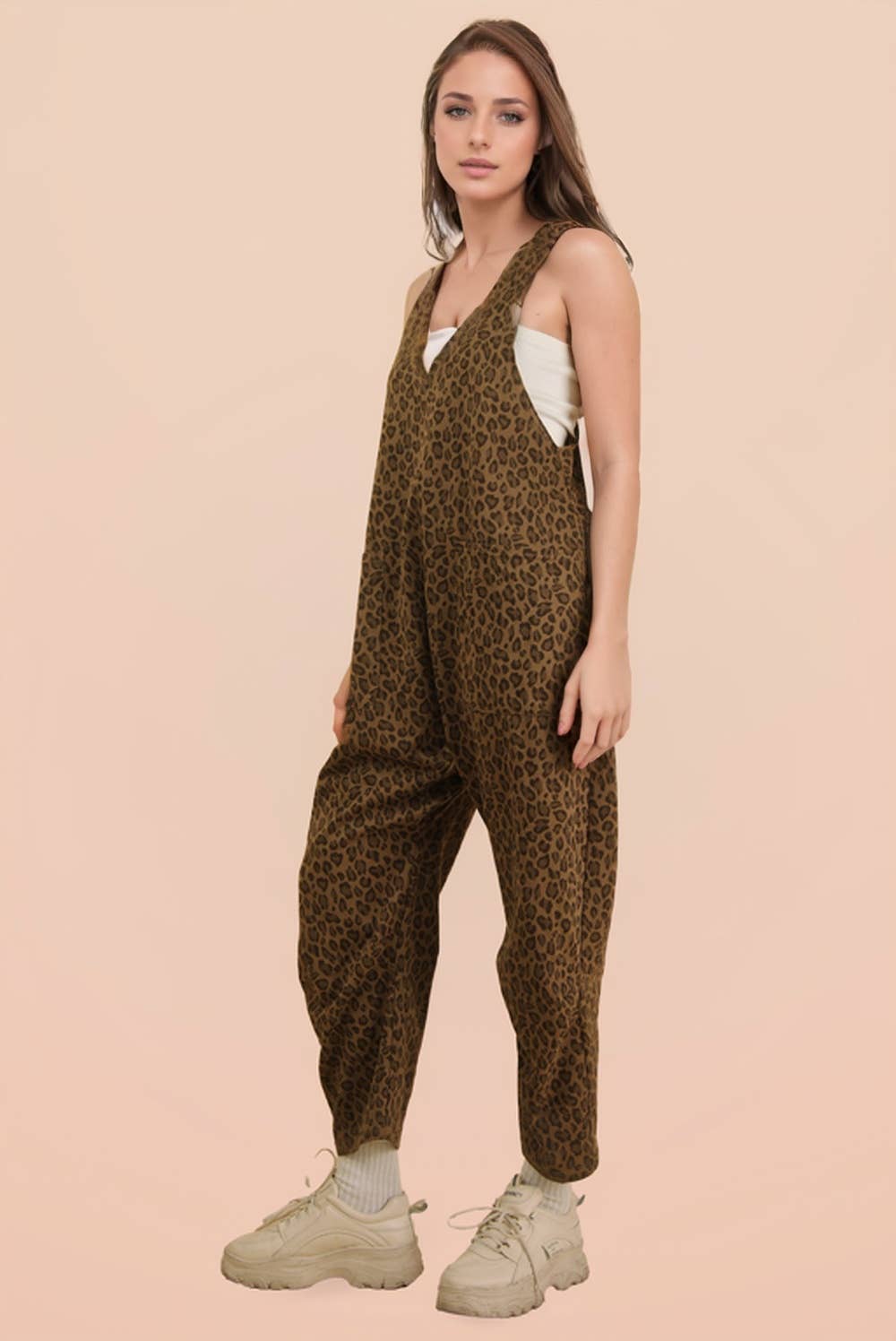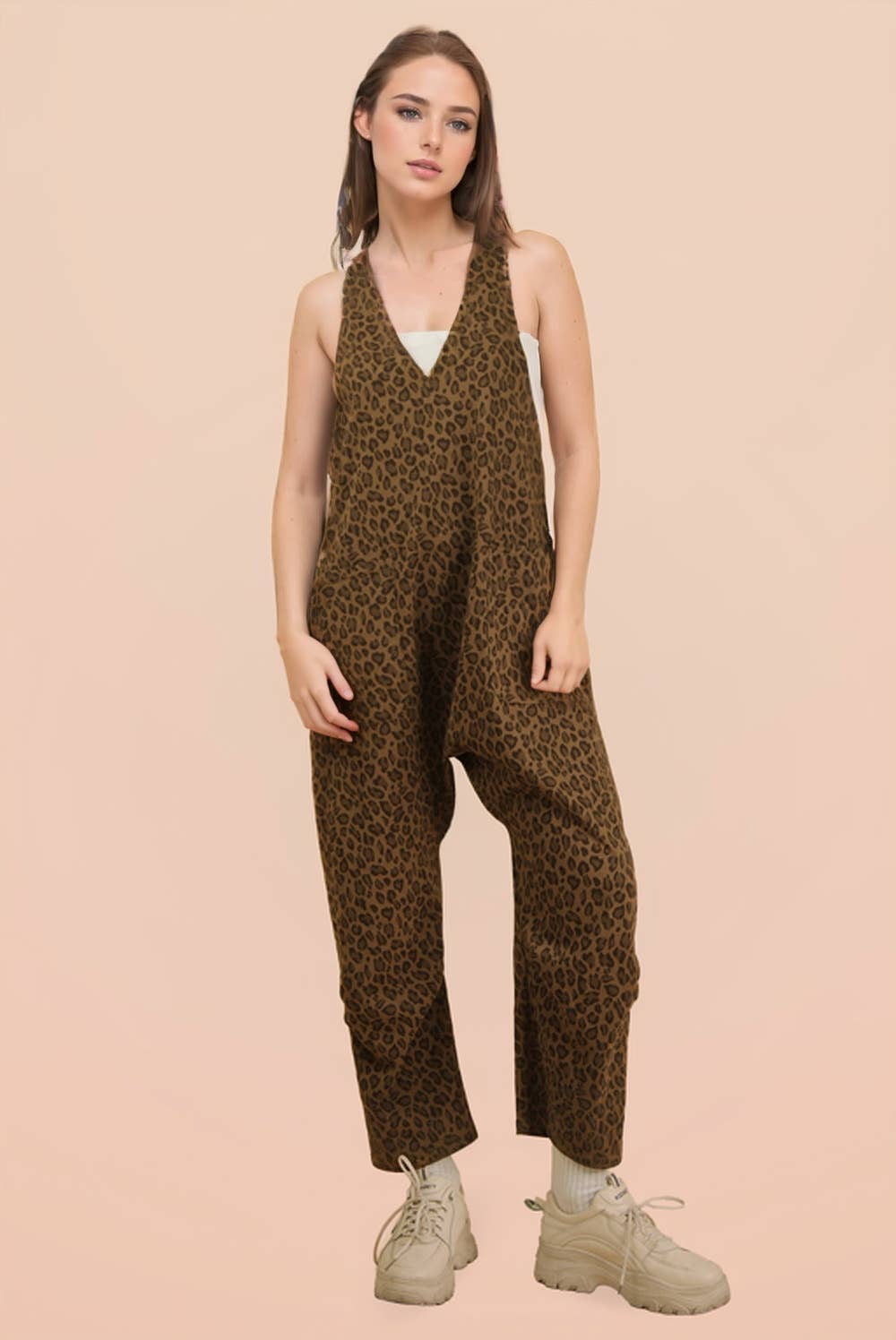 Leopard Printed Casual Loose Fit Knit Baggy Jumpsuit