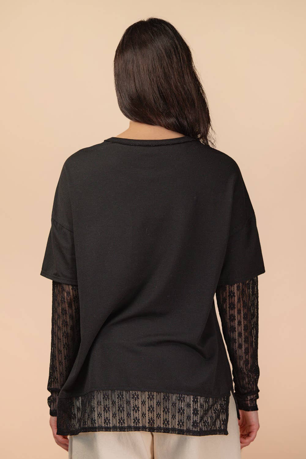 Oversized Casual Knit Top W/ Lace