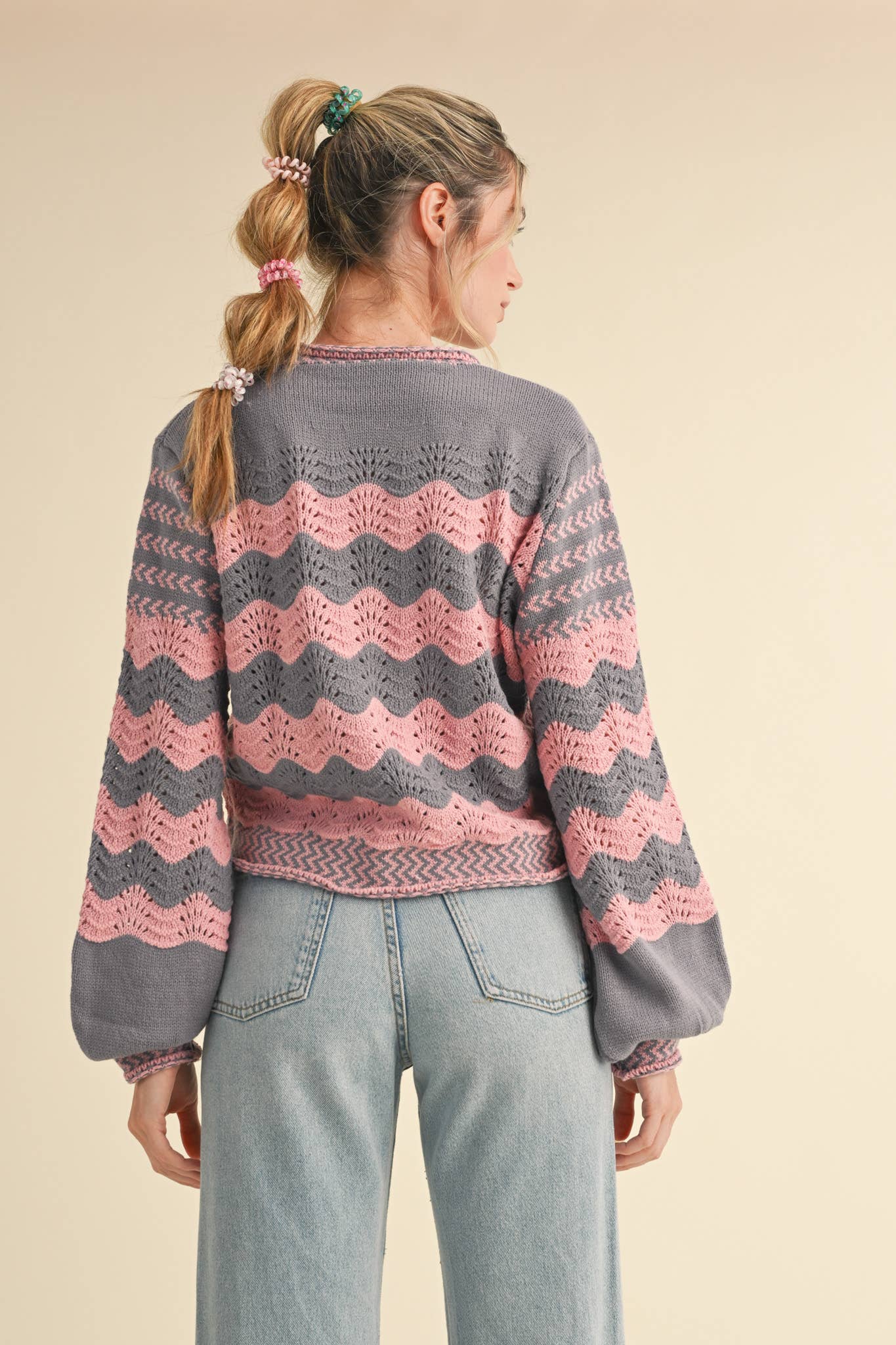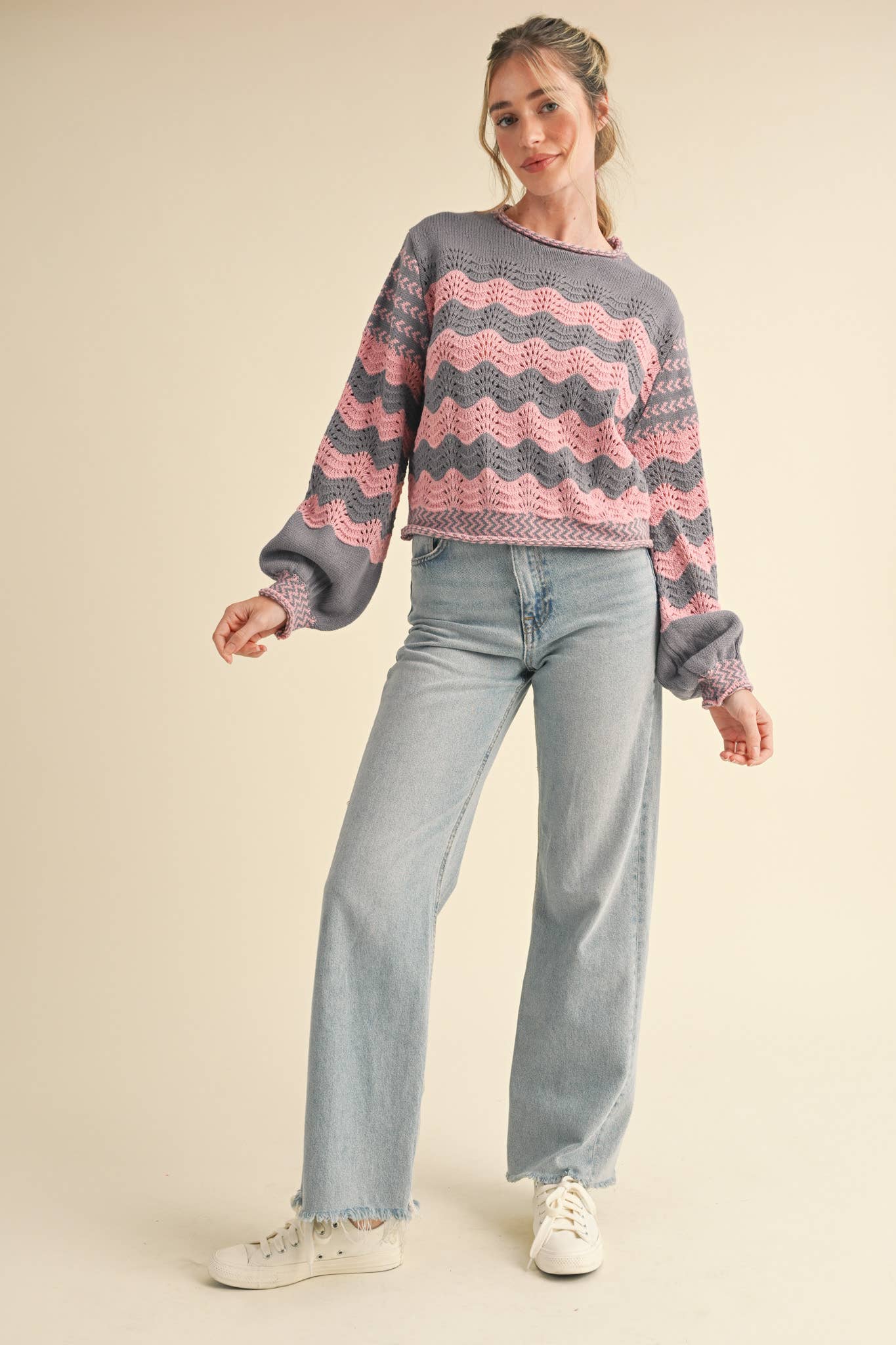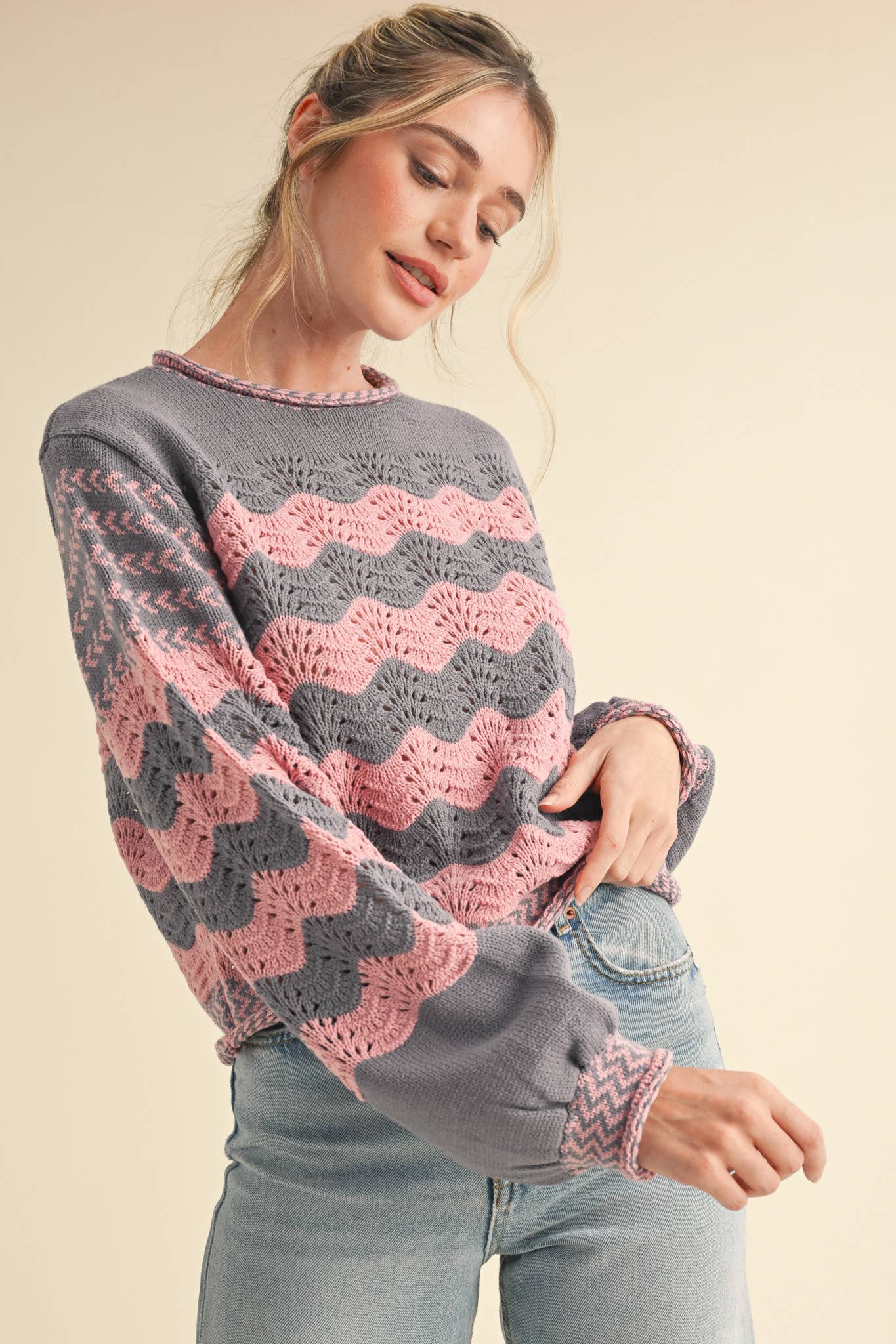 + Contrast zig zag stripe on neckline, cuffs, and hem